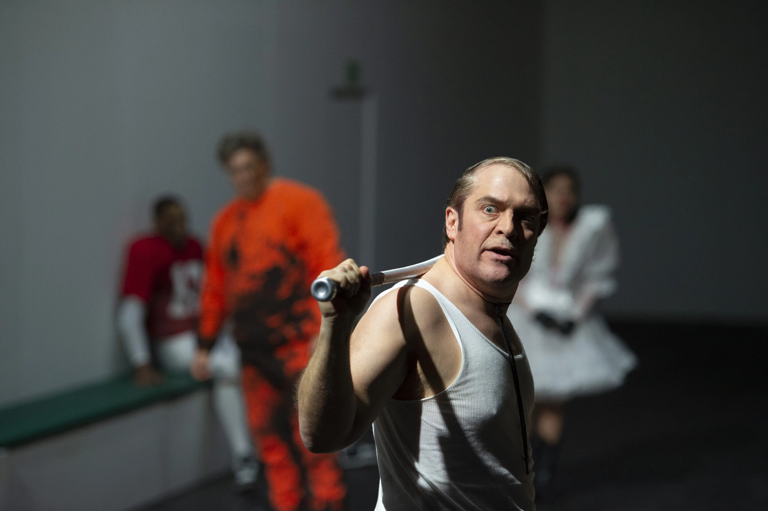 November 2019, Oper Frankfurt, Bockenheimer Depot, Tamerlano, opera by Händel, director R. B. Schlather, conductor Karsten Januschke, set Paul Steinberg, costume Doey Lüthi, light Marcel Heyde, dramaturge Mareike Wink, photographs Monika Rittershaus, with Lawrence Zazzo, Yves Saelens, Liz Reiter, Liviu Holender, Brennan Hall, and Cecelia Hall